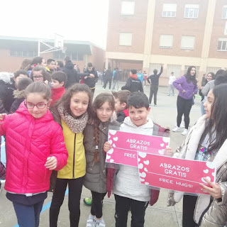 Regalando abrazos en el colegio durante el 14 de febrero, día de la amistad. Con pequeñas acciones podremos conseguir grandes logros.